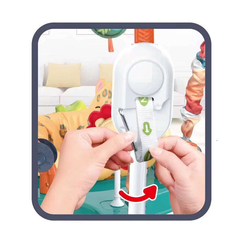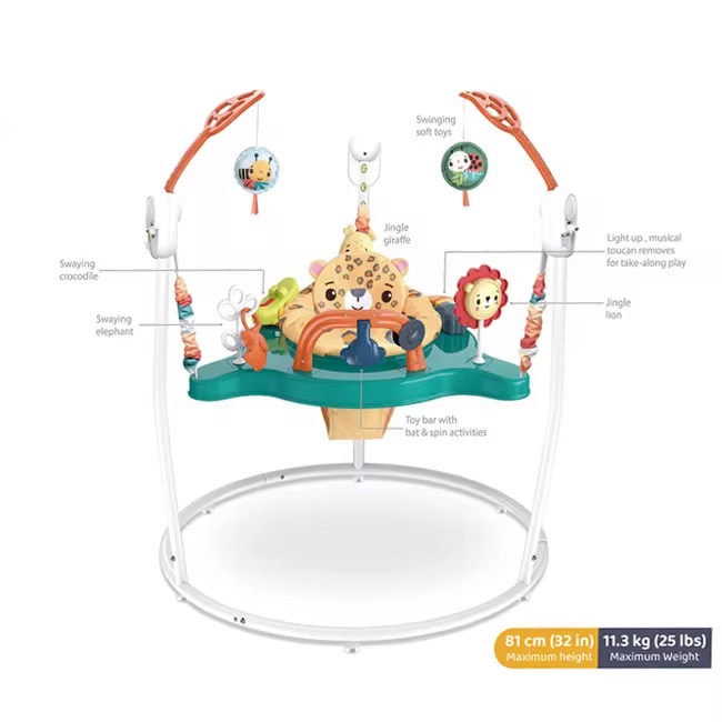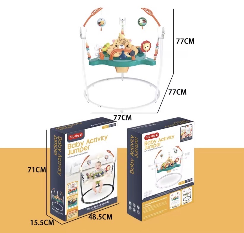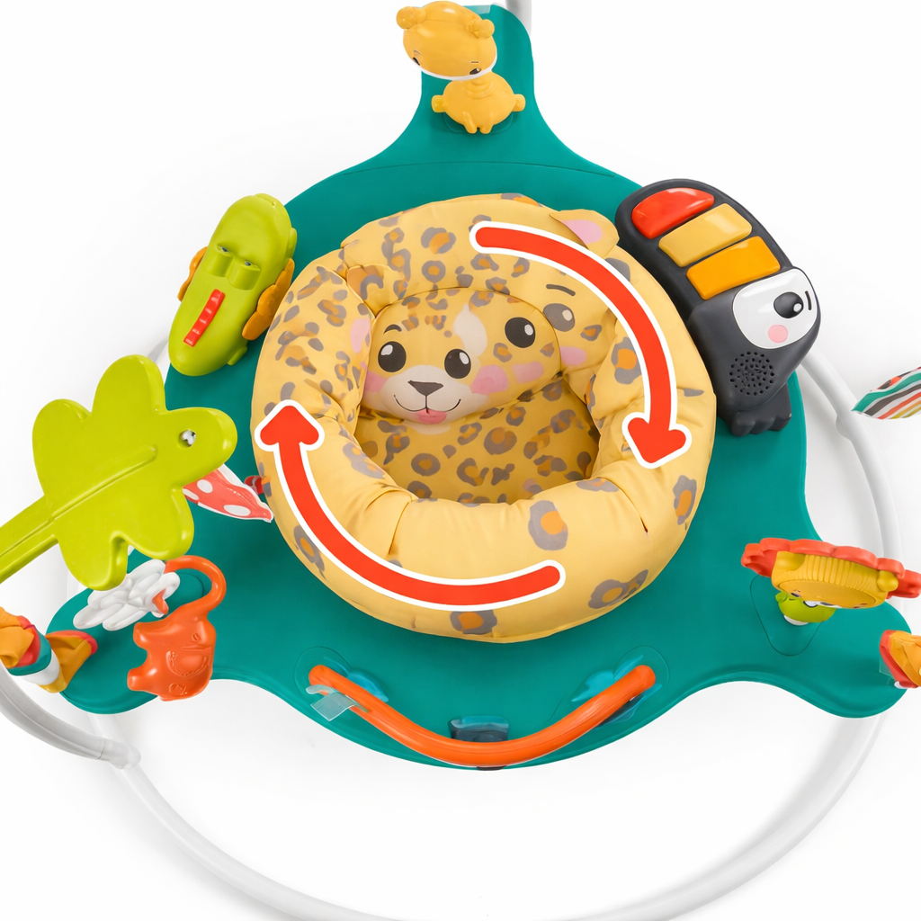 Ofera-i bebelusului tau un mediu sigur si stimulant pentru a sari, a invata si a explora. Centrul de activitati combina miscarea fizica (saritul) cu jocul senzorial, dezvoltand coordonarea si forta picioarelor.