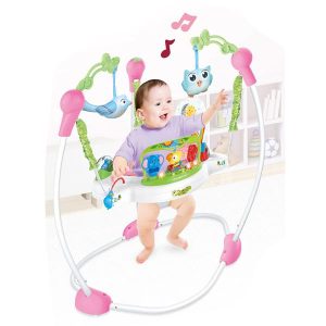Saritorul pentru fetite cu panou interactiv Bebeking Forest Fun asigura toate elementele necesare pentru a-l mentine ocupat pe micutul tau: platforma, melodii, sunete, lumini si jucarii.