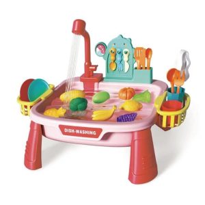 Chiuveta de bucatarie este o jucarie creativa care dezvolta simturile copilului tau. Aceasta este confectionata din plastic reciclabil si imita cu succes activitatile zilnice ale mamei in bucatarie.