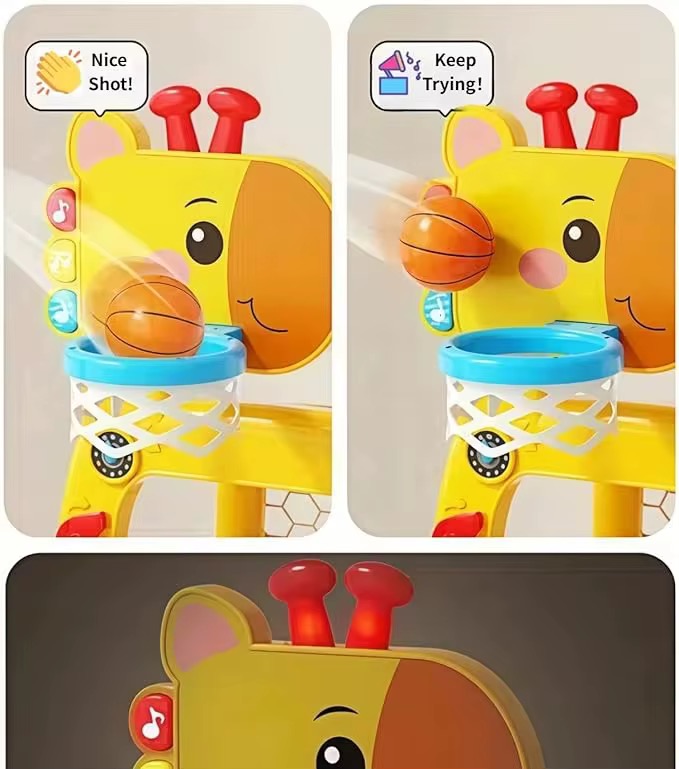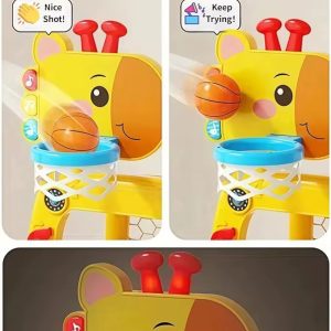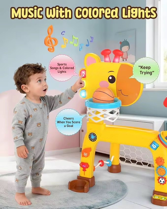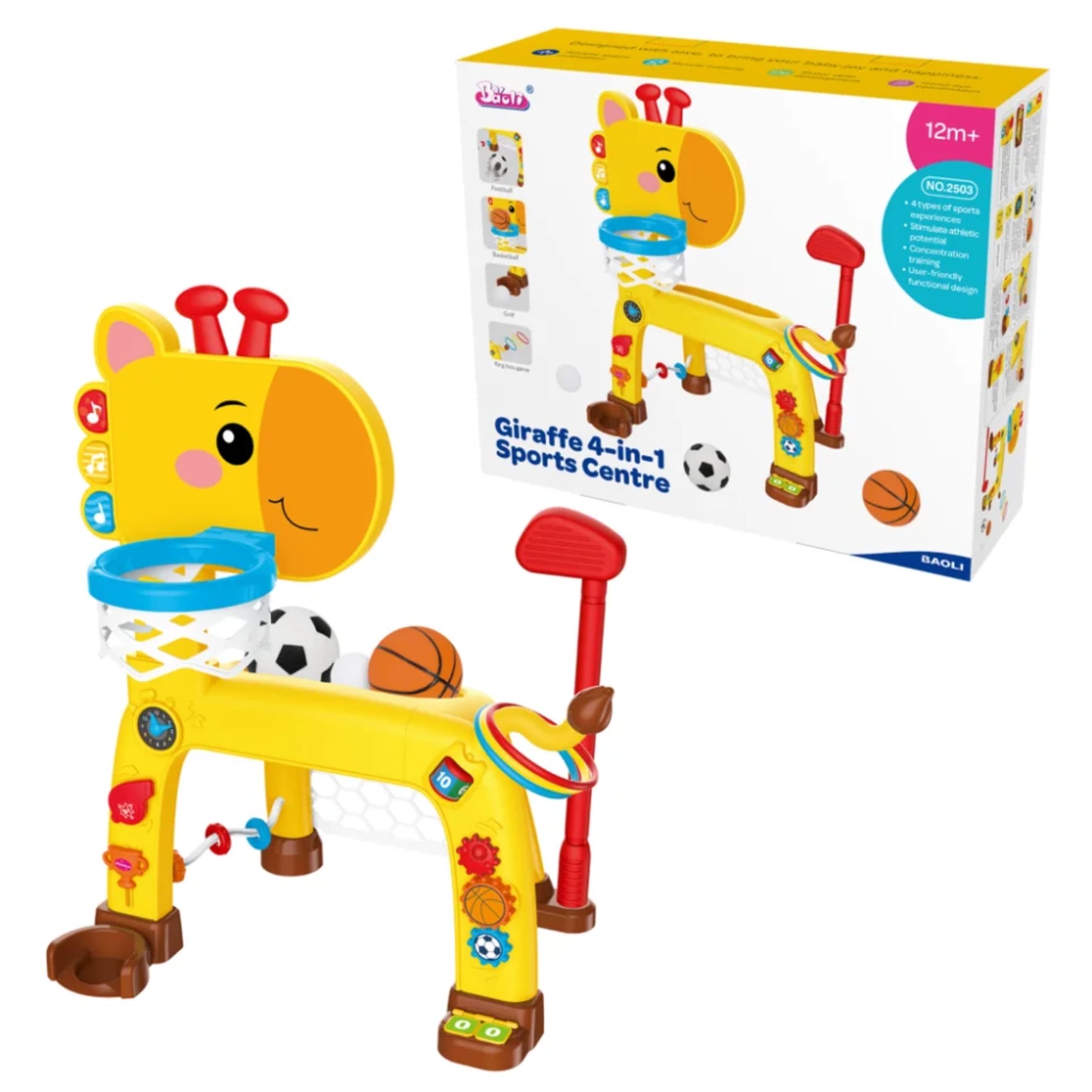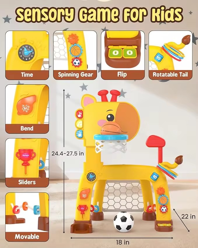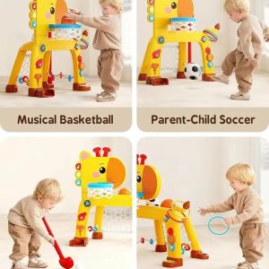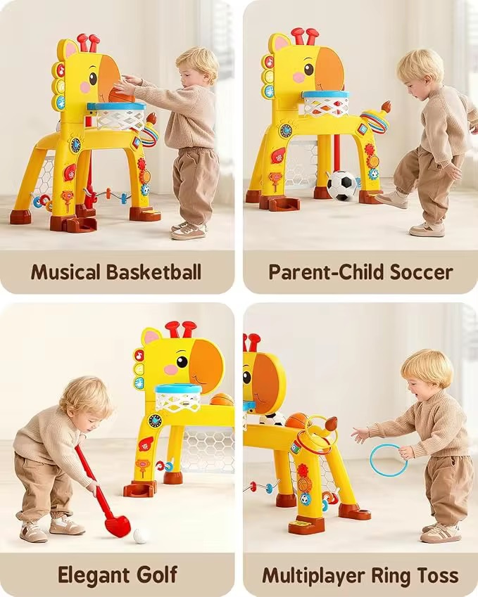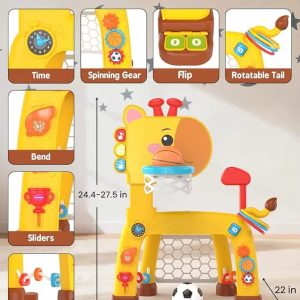 Set de joaca pentru copii model Girafa cu poarta de fotbal, cos de baschet si jocuri interactive