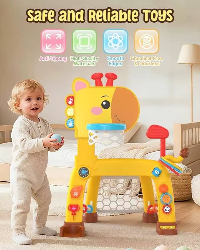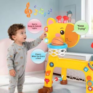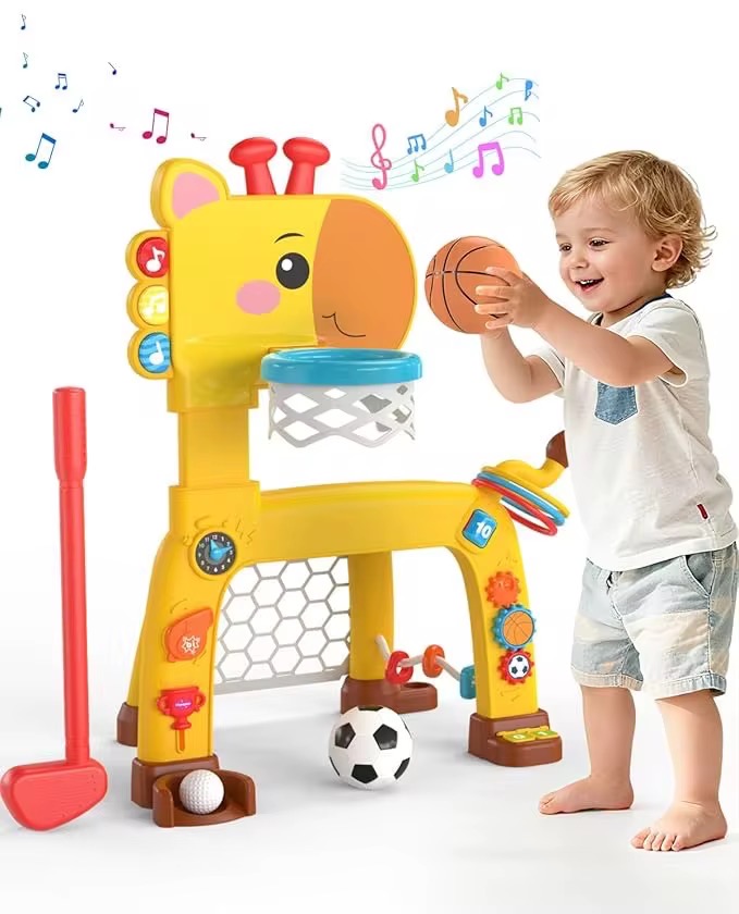 O jucarie multifunctionala care transforma joaca intr-o adevarata aventura! Acest set de joaca 4 in 1 ofera copiilor mai multe moduri distractive de joaca: baschet, fotbal, golf si aruncarea inelelor. In plus, jucaria include sunete muzicale si elemente interactive, care stimuleaza atentia si curiozitatea celor mici.