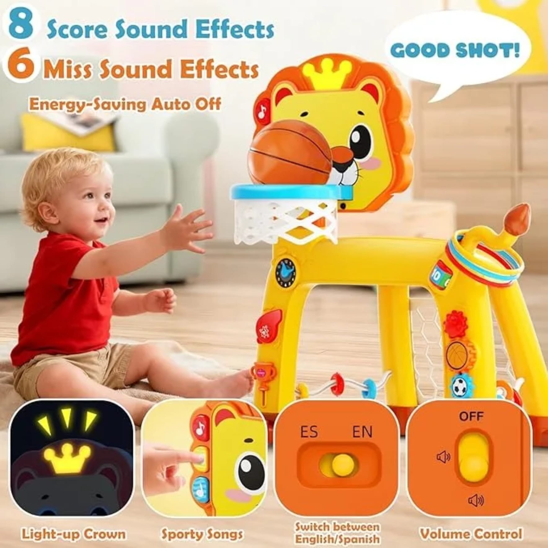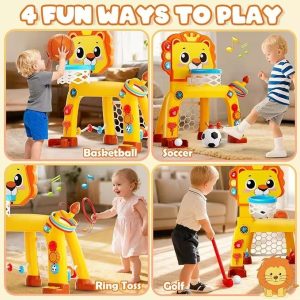 Transformă joaca într-o experiență activă și distractivă cu setul sportiv model leu! Compact și ușor de folosit, acest set oferă mai multe tipuri de joc într-un singur produs, fiind ideal pentru copii energici.Cosul de baschet poate fi, de asemenea, reglat pe inaltime pentru a se adapta la cresterea celor mici .Un joc unic pentru copii care combina fotbalul, baschetul si golful, ideal pentru a le permite celor mici sa se distreze in diferite moduri in acelasi timp .