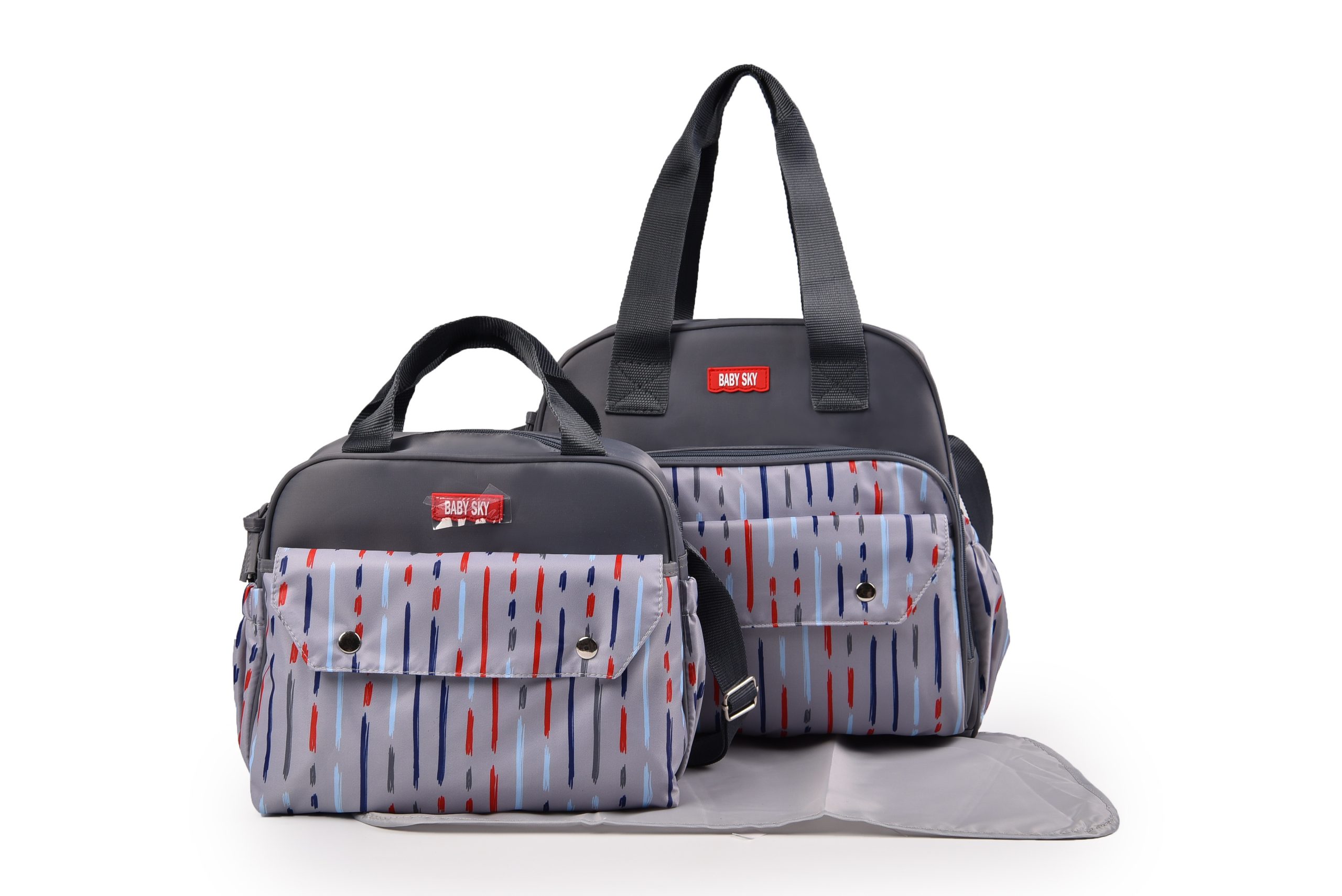 Setul de genti pentru bebelusi Sky Baby este un accesoriu foarte practic si indispensabil oricarei mamici. Contine toate gentile necesare pentru transportul accesoriilor bebelusilor, inclusiv o salteluta pe care se poate schimba cel mic.