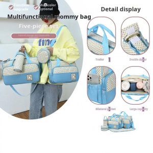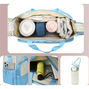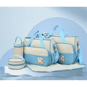 Pachetul contine 5 piese: gentuta de umar propriu-zisa, o geanta pentru scutece,o salteluta pe care se poate schimba cel mic, un portfard, gentuta pentru biberon.