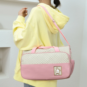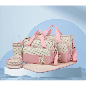 Pachetul contine 5 piese: gentuta de umar propriu-zisa, o geanta pentru scutece,o salteluta pe care se poate schimba cel mic, un portfard, gentuta pentru biberon.
