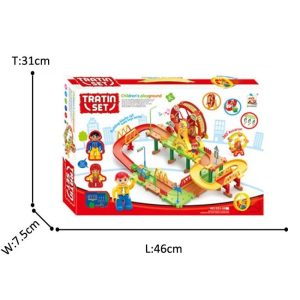 Setul trenuletul vesel este echipat cu o mini locomotiva electrica autopropulsata care poate circula liber de-a lungul sinelor.